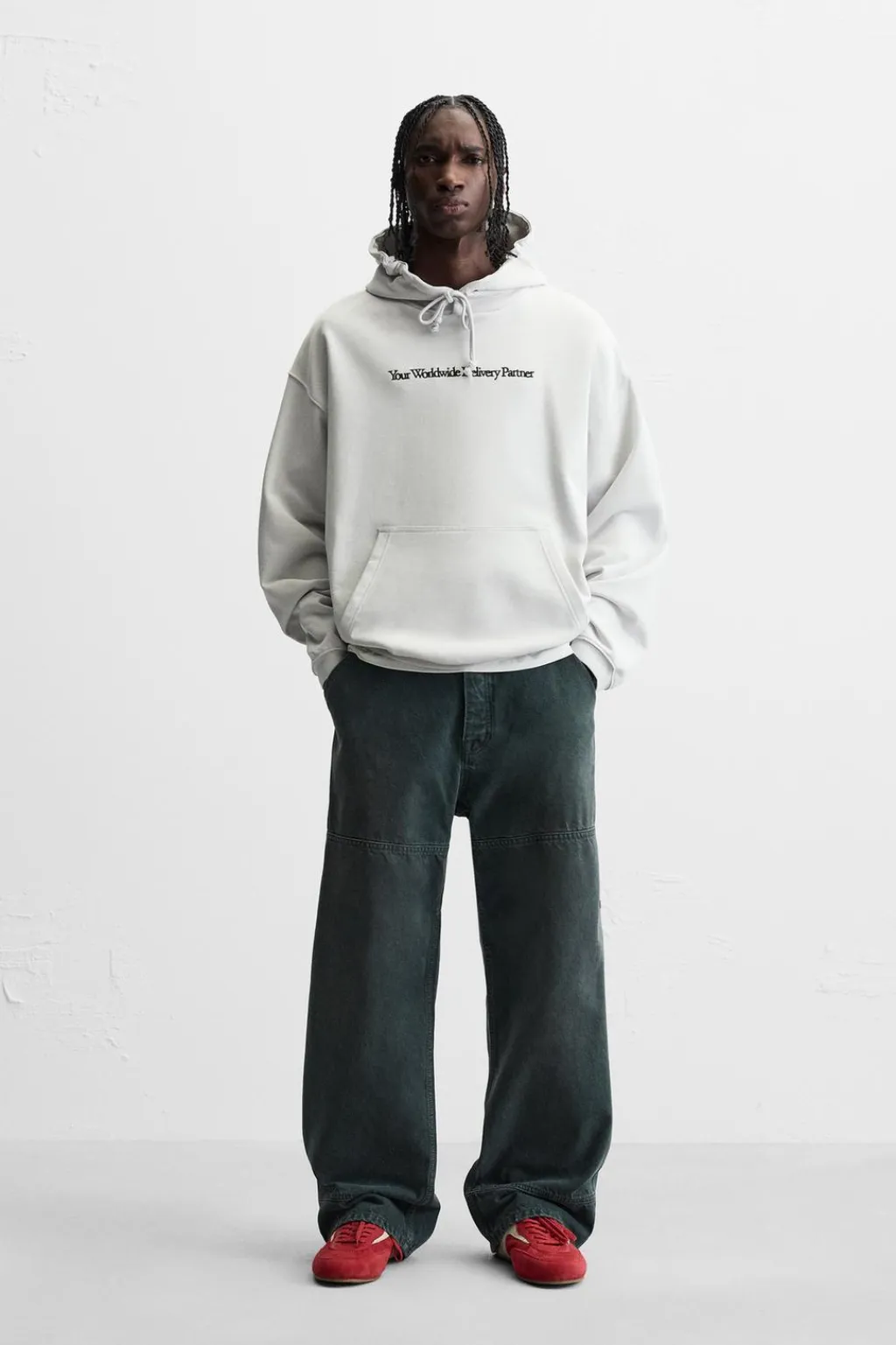 Sudadera hoodie relaxed fit, Cuello con capucha ajustable. Manga larga. Bordado y estampados combinados a contraste en delantero y espalda. Acabados en rib.