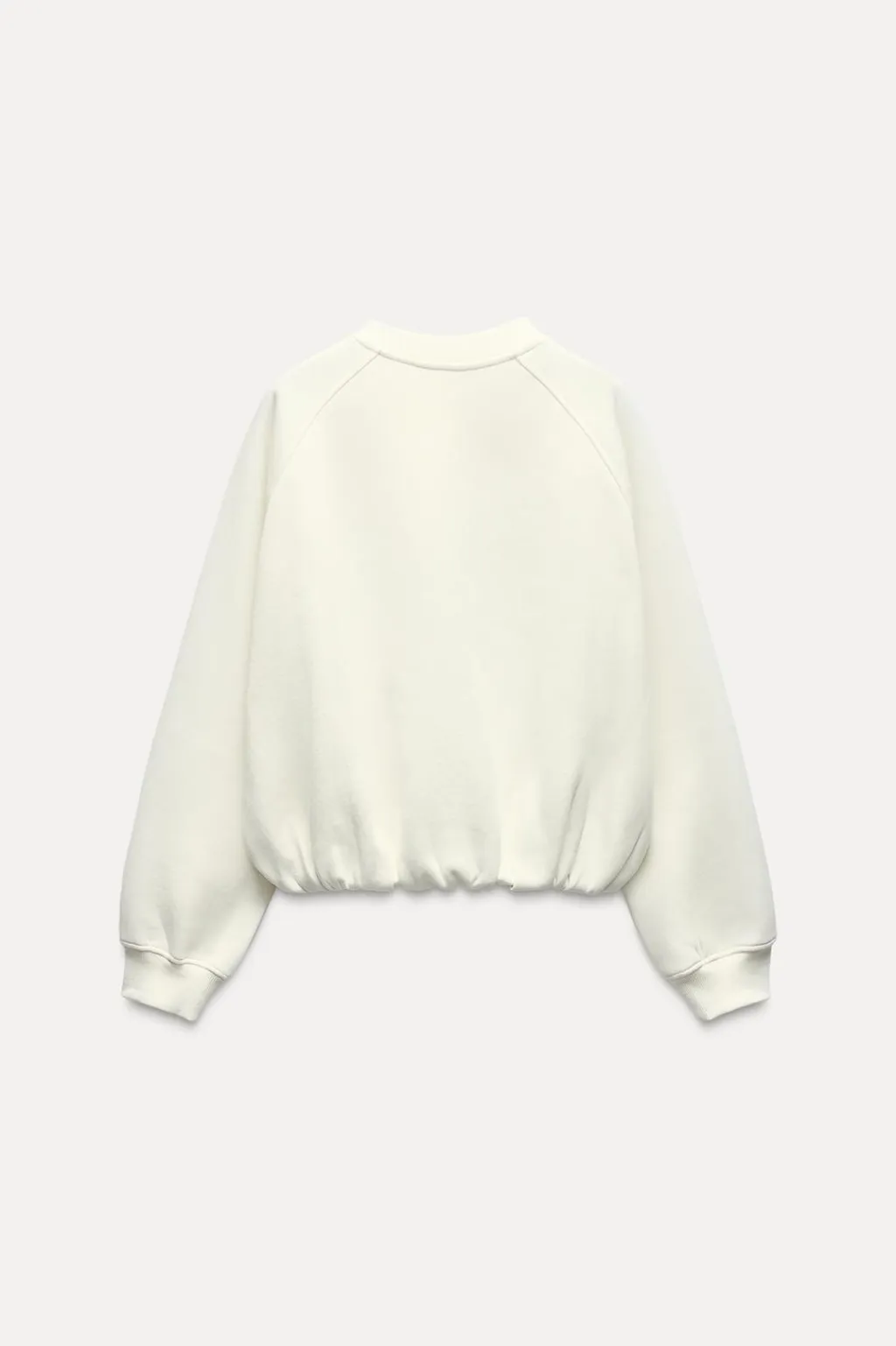 Sudadera de cuello redondo y manga larga. Detalle de texto combinado en delantero y números en hombros. Acabados en rib. Bajo acabado abullonado con elástico interior.