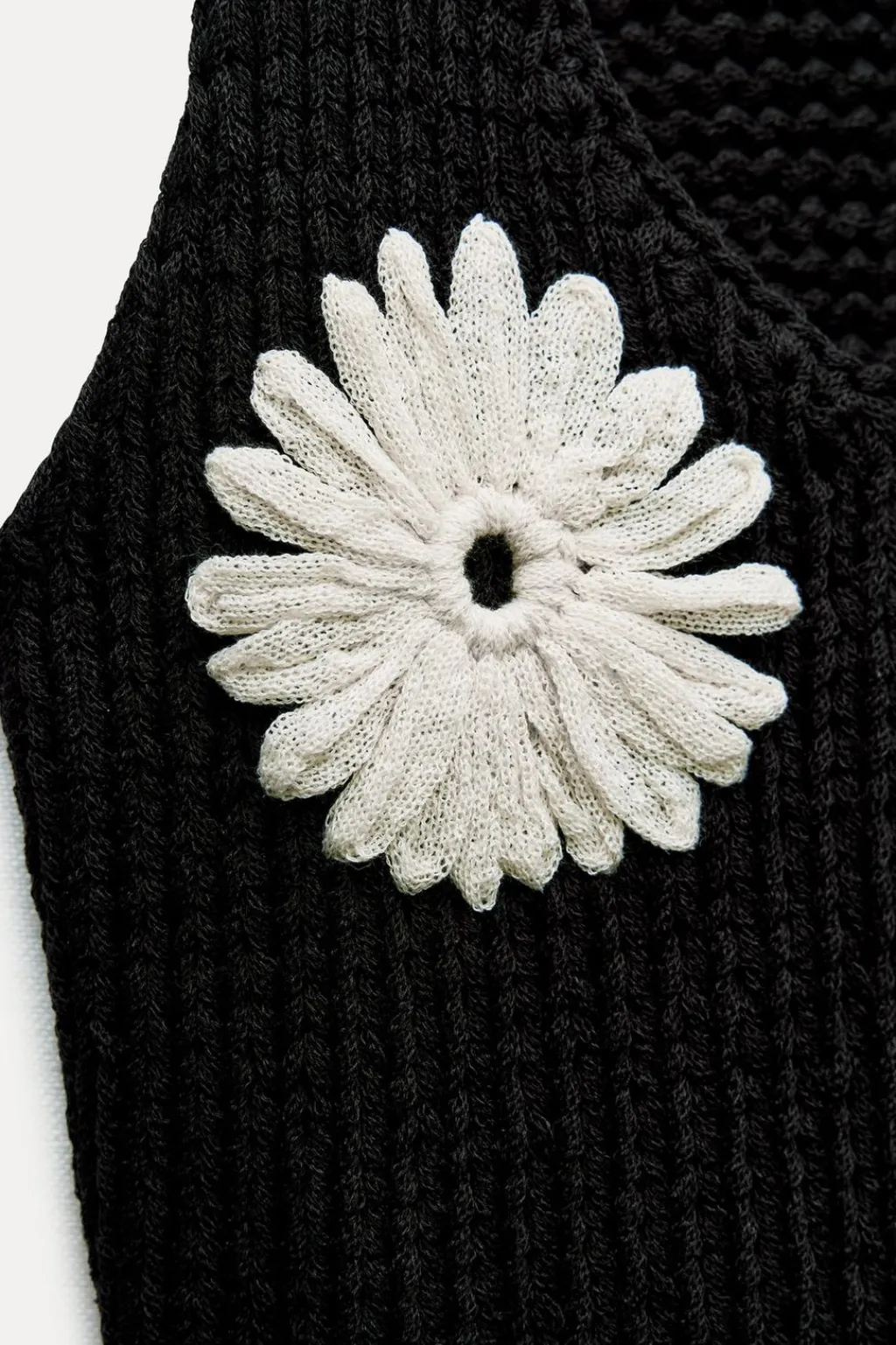 Top de escote pico y manga sisa. Detalle de tejido combinado delantero en forma de flor.