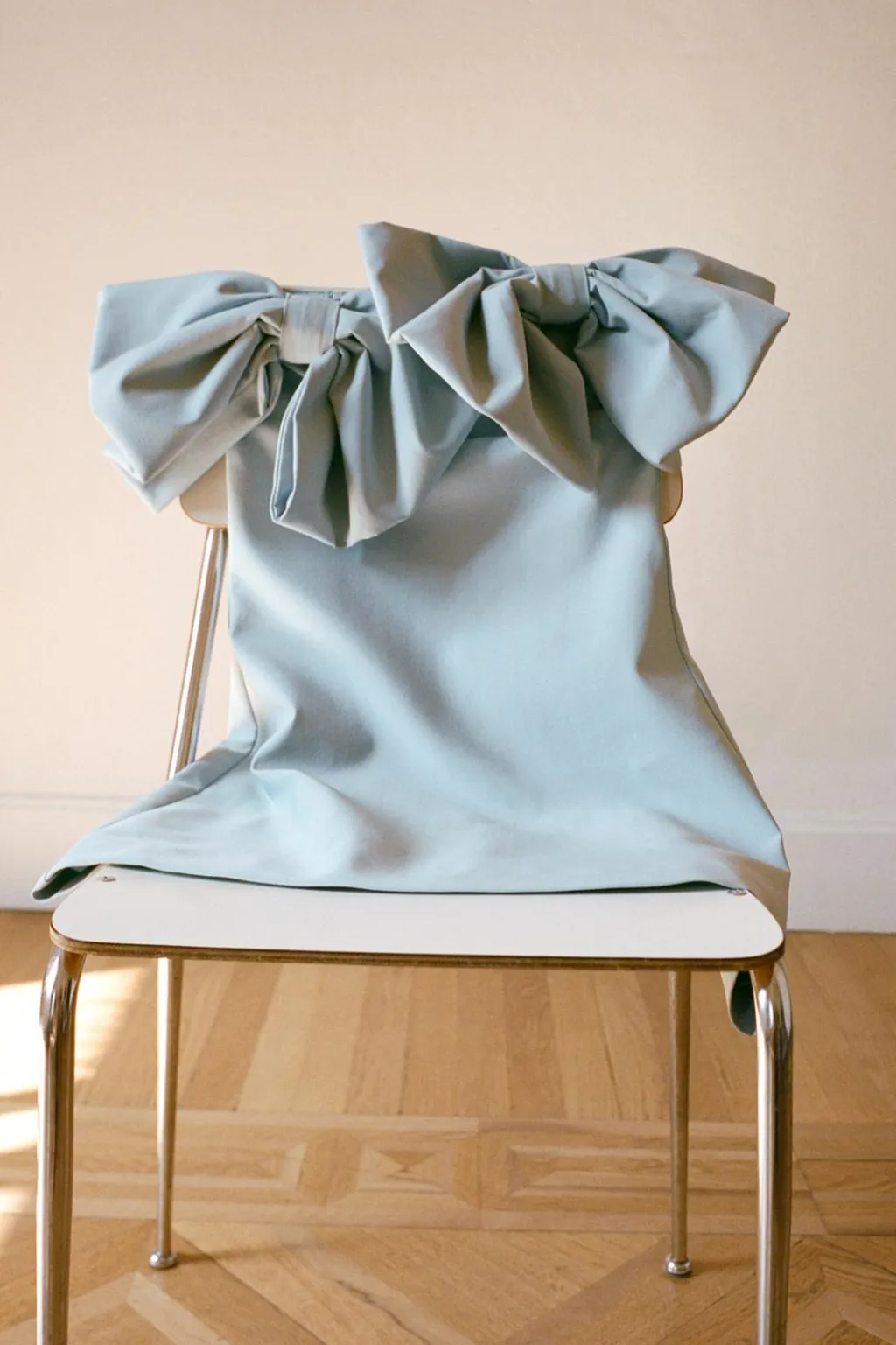 Vestido corto de escote recto con elástico y hombros descubiertos. Detalle de maxi lazos. Forro interior combinado a tono. Cierre en espalda con cremallera oculta en costura.