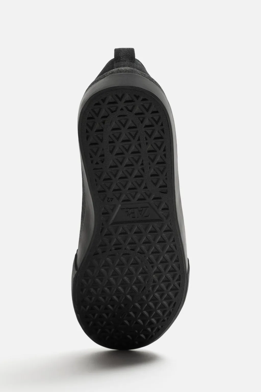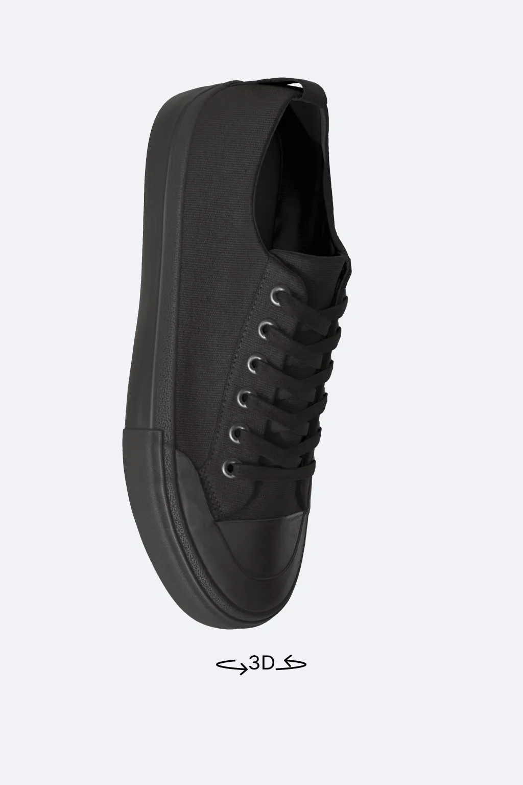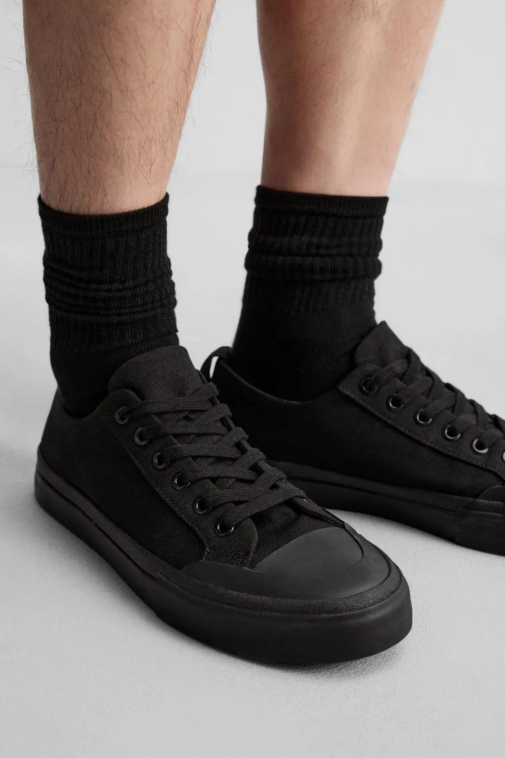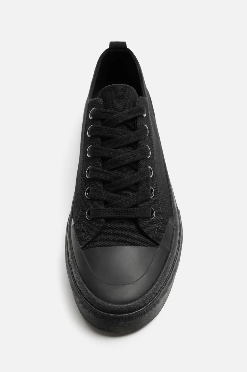 Zapatilla deportiva. Parte superior fabricada en tejido de algodón con detalle de goma en la punta. Cordonera con seis pasados. Tirador trasero para facilitar el calce. Suela a tono.
