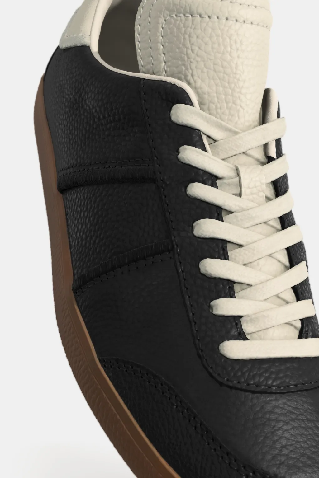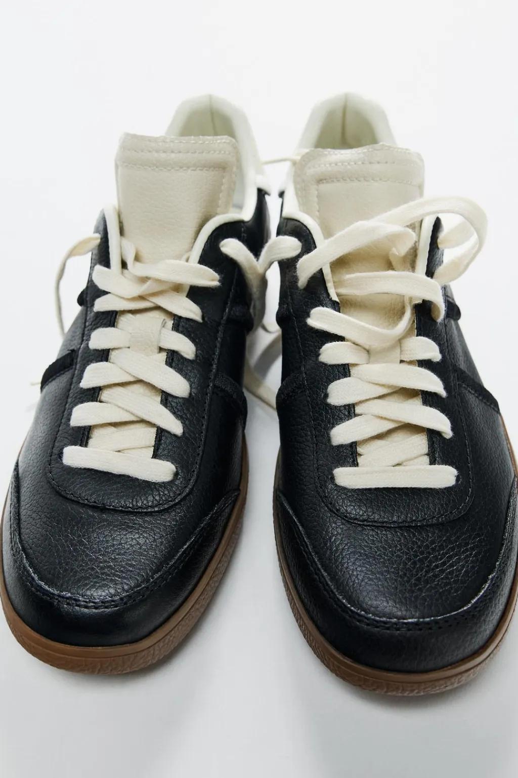 Zapatillas deportivas tipo bamba en piel. Detalle de maxi lengüeta. Parte trasera y delantera en combinación de colores. Cierre mediante cordones.