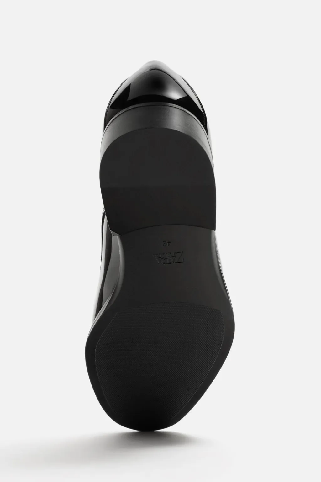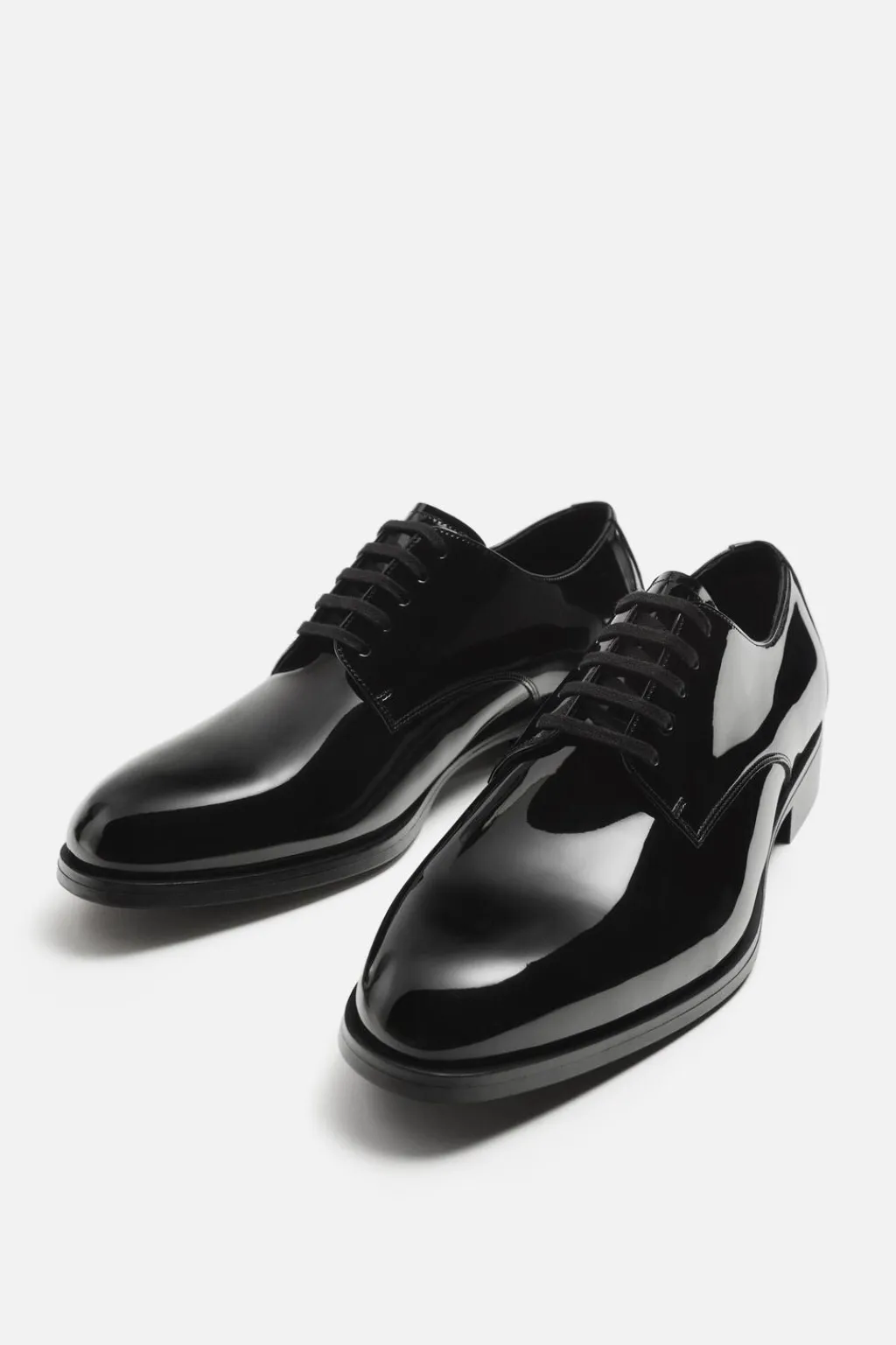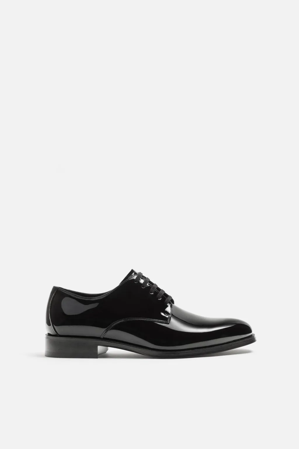 Zapato de vestir tipo derby. Cordonera con cinco pasados. Horma en punta. Suela con ligero tacón.