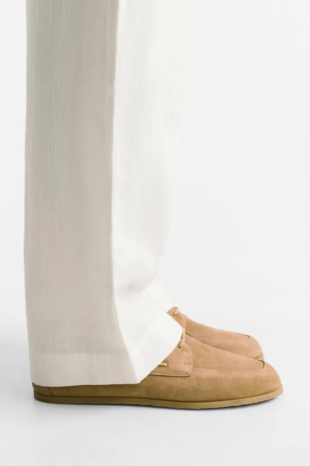 Zapato tipo náutico. Parte superior fabricada en piel con acabado serraje. Cordonera con dos pasados. Plantilla interior fabricada en piel. Suela ultrafina.