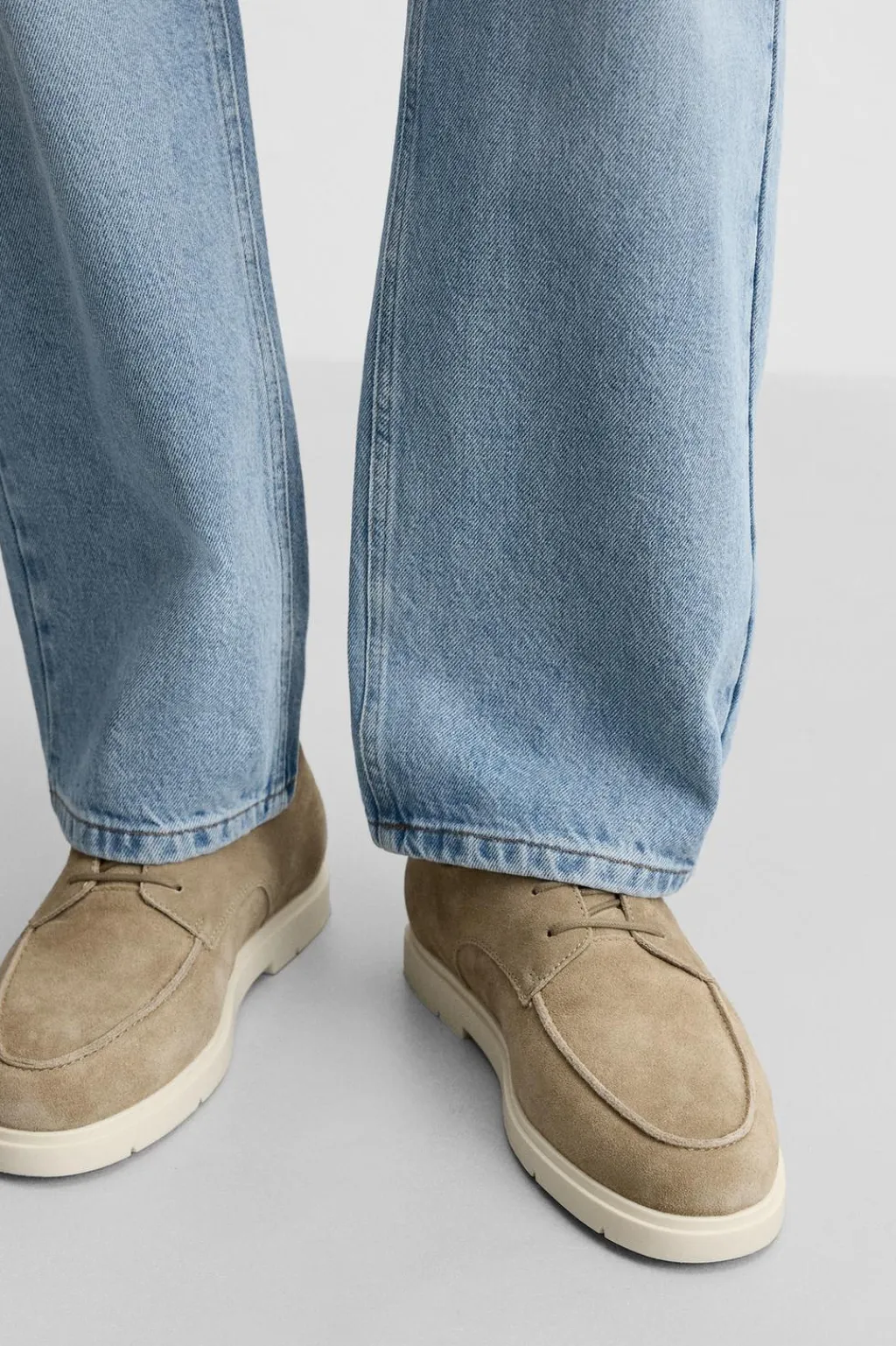 Zapato tipo derby. Parte superior fabricada en piel con acabado serraje. Detalle de bordón. Cordonera con tres pasados. Suela a contraste.