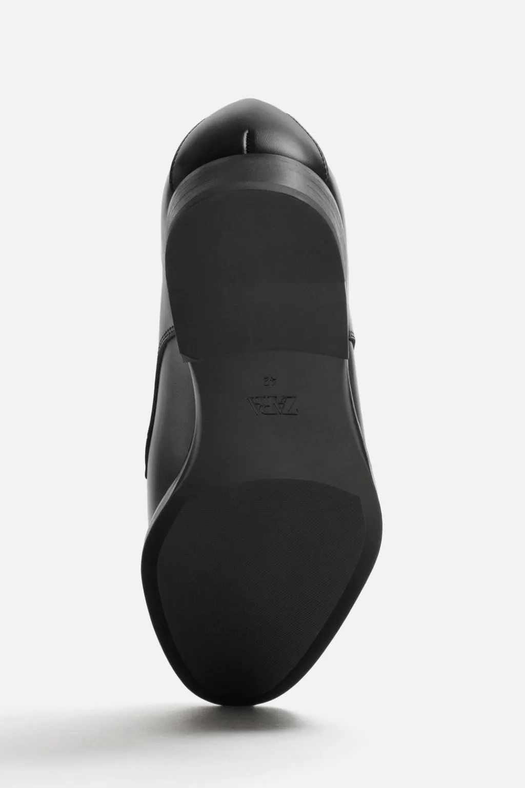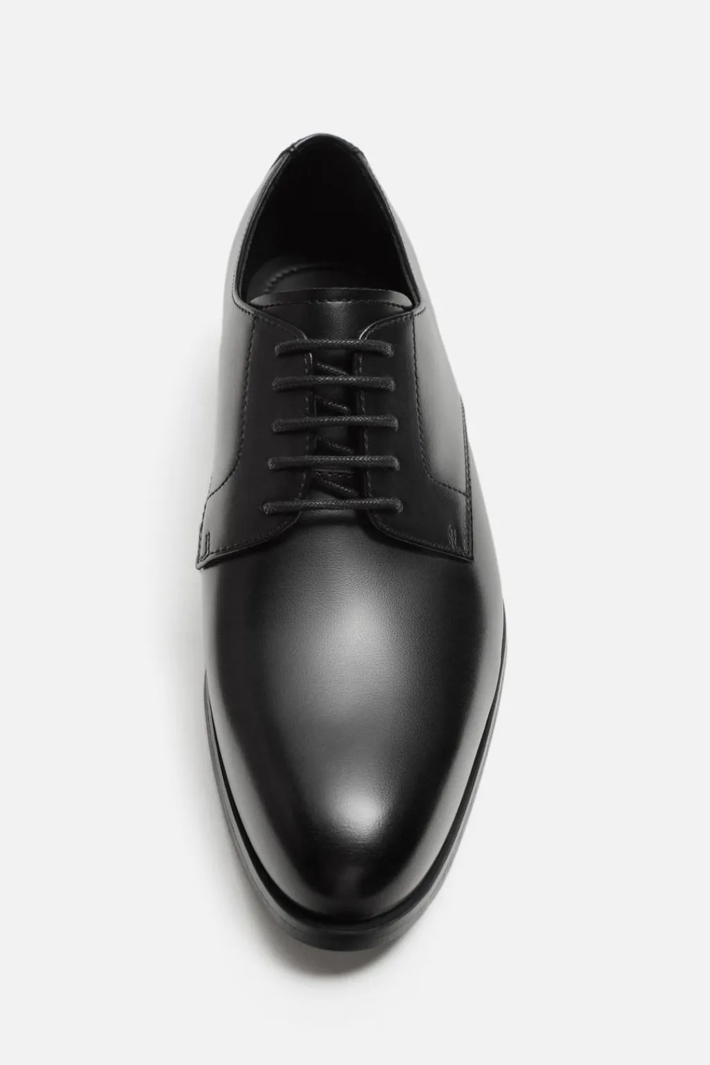 Zapato de vestir tipo derby. Cordonera con cinco pasados. Horma en punta. Suela con ligero tacón.