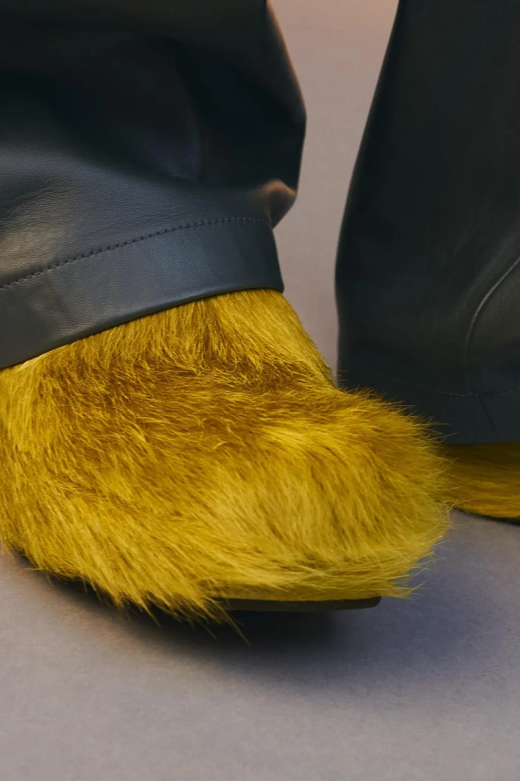 Zueco fabricado en piel con acabado pelo. Forro interior y plantilla en piel. Horma cuadrada. Suela con plataforma.